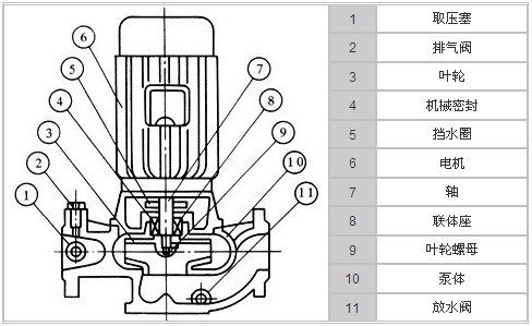 低轉(zhuǎn)速管道離心泵結(jié)構(gòu)圖 低轉(zhuǎn)速管道離心泵適用范圍 低轉(zhuǎn)速管道離心泵主要用于空調(diào)系統(tǒng)冷凍水,冷卻水循環(huán)及末端增壓,城市供熱系統(tǒng)局部或末端增壓循環(huán),及城市建筑消防系統(tǒng)局部恒壓及各種空調(diào)熱水鍋爐配套。 低轉(zhuǎn)速管道離心泵特點(diǎn) 1.低轉(zhuǎn)速管道離心泵為立式結(jié)構(gòu),進(jìn)出口口徑相同,且位于同一中心線上,可象閥門一樣安裝于管路之中,外形緊湊美觀,占地面積小,建筑投入低,如加上防護(hù)罩則可置于戶外使用。 2.葉輪直接安裝在電機(jī)的長軸上,軸向尺寸短,結(jié)構(gòu)緊湊,泵與電機(jī)軸承配置合理,能有效地平衡泵運(yùn)轉(zhuǎn)產(chǎn)生的徑向和軸向負(fù)荷,從而保證了泵的運(yùn)行平穩(wěn),振動(dòng)小、噪音低。 3.軸封采用機(jī)械密封或機(jī)械密封組合,采用進(jìn)口鈦合金密封環(huán)、中型耐高溫機(jī)械密封和采用硬質(zhì)合金材料,耐磨密封,能有效地延長機(jī)械密封的使用壽命。 4.低轉(zhuǎn)速管道離心泵安裝檢修方便,無需拆動(dòng)管路系統(tǒng),只要卸下泵聯(lián)體座螺母即可抽出全部轉(zhuǎn)子部件。 5.可根據(jù)使用要求即流量和揚(yáng)程的需要采用泵的串、并聯(lián)運(yùn)用方式。 6.可根據(jù)管路布置的要求采用泵的豎式和橫式安裝。 低轉(zhuǎn)速管道離心泵工作條件 1、吸入壓力≤1.6MPa,或泵系統(tǒng)最高工作壓力≤1.6MPa,即泵吸入口壓力+泵揚(yáng)程≤1.6MPa、泵靜壓試驗(yàn)壓力為2.5MPa,訂貨時(shí)請注明系統(tǒng)工作壓力。泵系統(tǒng)工作壓力大于1.6MPa時(shí)應(yīng)在訂貨時(shí)另行提出,以便在制造時(shí)泵的過流部分和聯(lián)接部分采用鑄鋼材料。 2、環(huán)境溫度<40℃,相對濕度<95%。 3、所輸送介質(zhì)中固體顆粒體積含量不超過單位體積的0.1%,粒度<0.2mm。 注:如使用介質(zhì)為帶有細(xì)小顆粒,請?jiān)谟嗀洉r(shí)注明,以便廠家采用耐磨式機(jī)械密封。 低轉(zhuǎn)速管道離心泵安裝 1、安裝前應(yīng)檢查機(jī)組緊固件有無松動(dòng)現(xiàn)象,泵體流道有無異物堵塞,以免水泵運(yùn)行時(shí)損壞葉輪和泵體。 2、安裝時(shí)管道重量不應(yīng)加在水泵上,以免使泵變形。 3、安裝時(shí)必須擰緊地腳螺栓,以免起動(dòng)時(shí)振動(dòng)對泵性能的影響。 4、為了低轉(zhuǎn)速管道泵維修方便和使用安全,在低轉(zhuǎn)速管道泵的選出口管路上各安裝一只調(diào)節(jié)閥及在泵出口附近安裝一只壓力表,以保證在額定揚(yáng)程和流量范圍內(nèi)運(yùn)行,確保低轉(zhuǎn)速管道泵正常運(yùn)行,增加水泵的使用壽命。 5、安裝后撥動(dòng)泵軸,葉輪應(yīng)無磨擦聲或卡死現(xiàn)象,泵則應(yīng)將泵拆開檢查原因。 6、管道泵分硬性聯(lián)接安裝和柔性聯(lián)接安裝兩種(見聯(lián)接方式)。